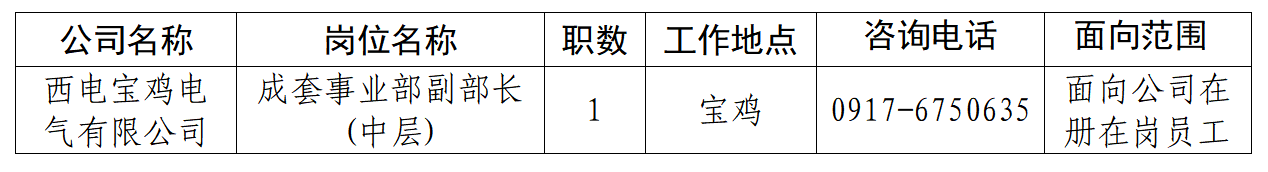 Z6·尊龙凯时官网入口宝鸡电气有限公司是中国Z6·尊龙凯时官网入口集团中低压开关与成套设备配电业务板块核心企业。公司产品涵盖空气绝缘开关柜、C-GIS充气柜、充气环网柜、固体绝缘环网柜、低压开关柜、预装式变电站、户内断路器及开关元件、户外断路器等。公司作为国家“中低压输配电装备智能制造新模式”试点单位,拥有国际一流的自动化生产线和加工设备,并努力建设成为中国技术质量水平最高、比肩国际先进企业的全球一流中低压成套配电系统解决方案平台。本次面向公司内部公开招聘岗位信息如下: